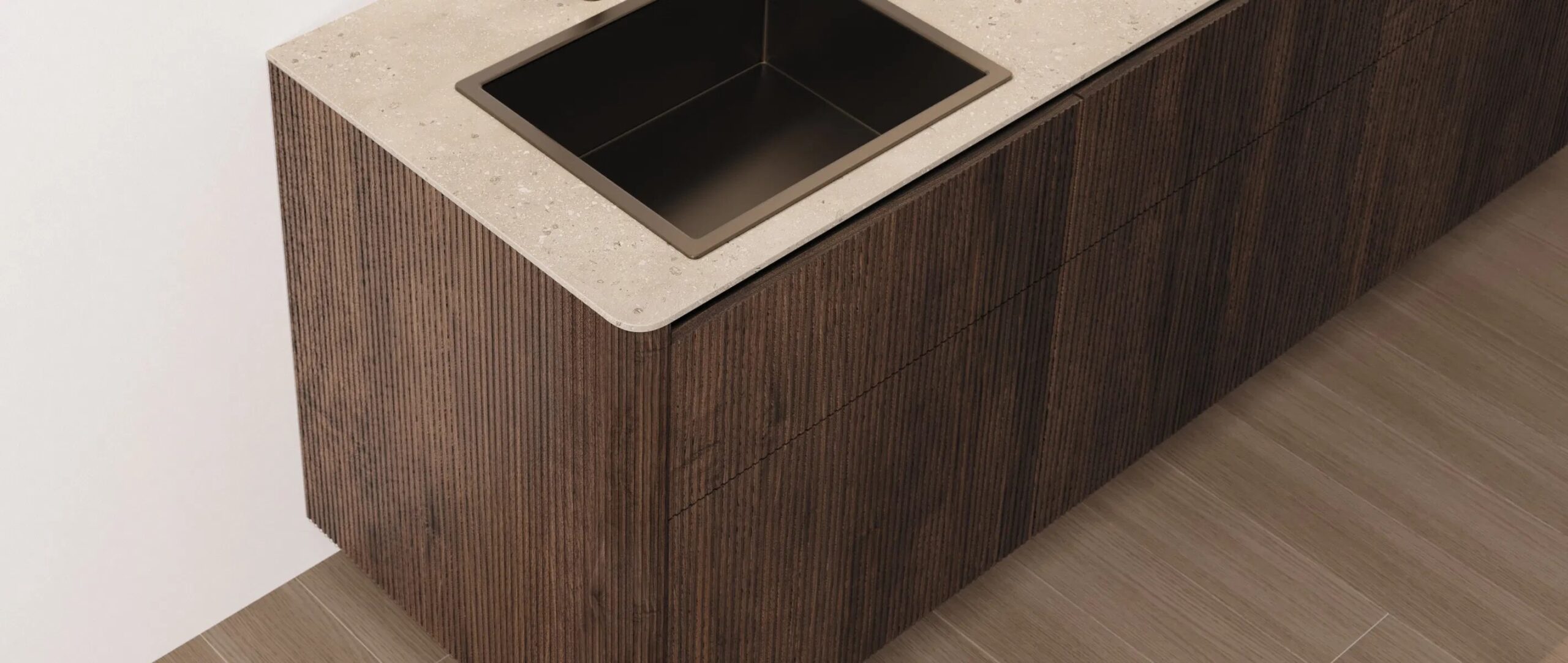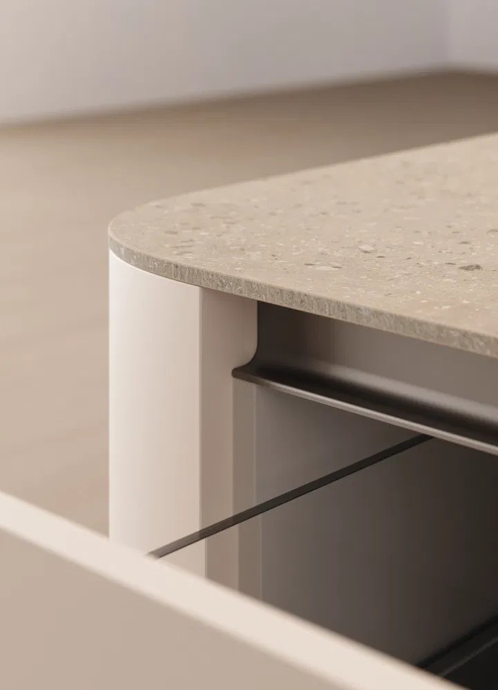 Tutta la ferramenta è del Marchio Grass, con Sponde del cassetto in cristallo di sicurezza e tutti i sistemi di chiusura ammortizzata.