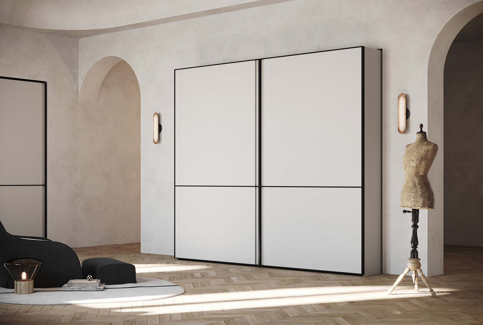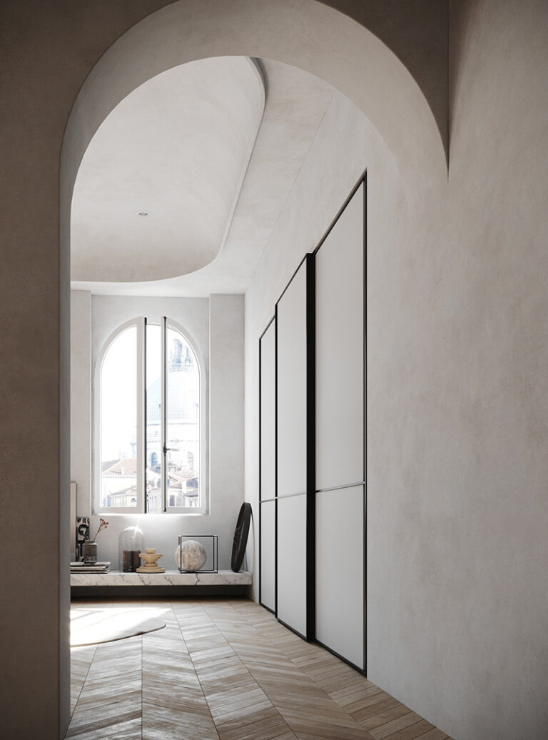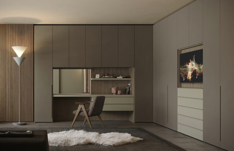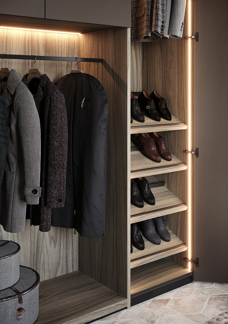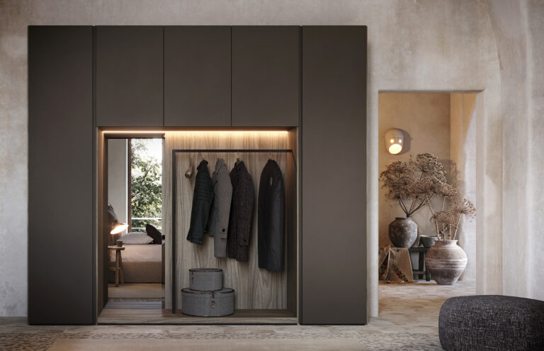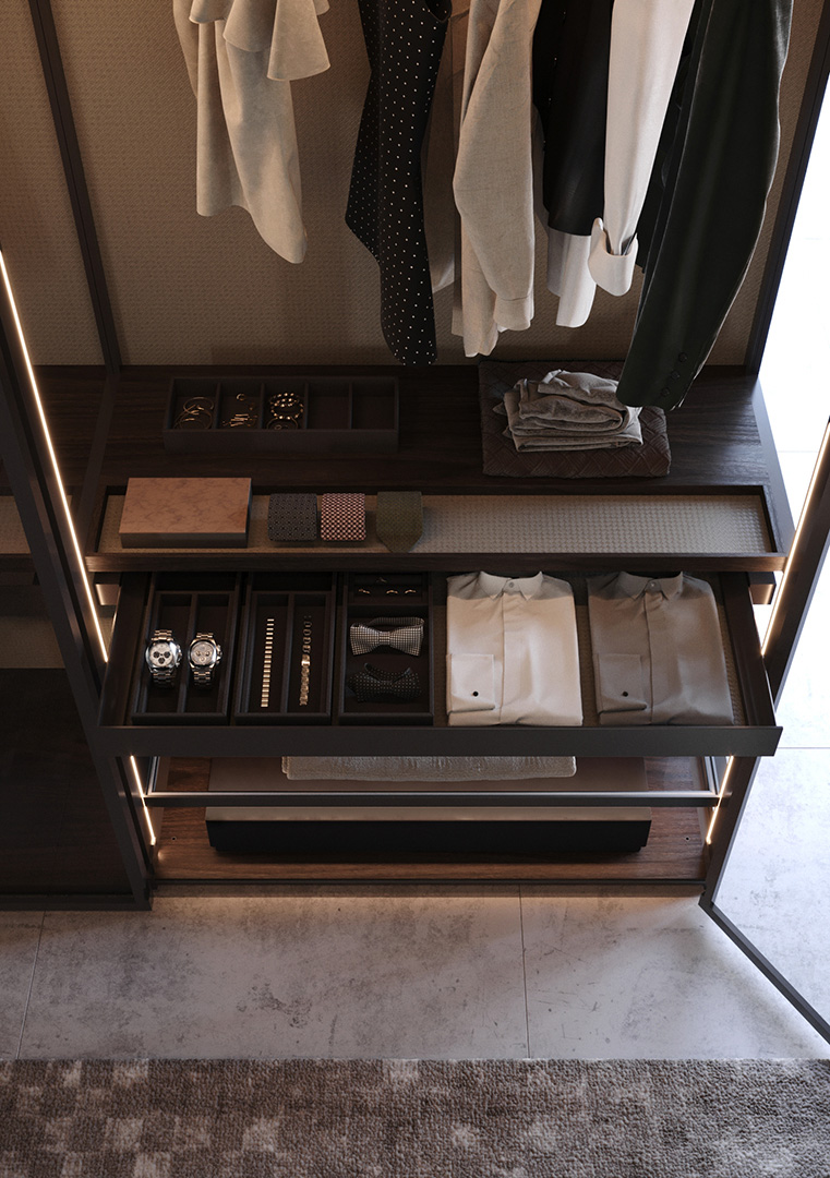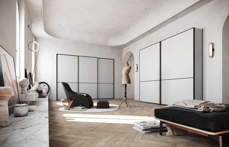 Ogni armadio può essere personalizzato nelle dimensioni e nell’ attrezzatura interna.Le aperture delle ante disponibili sono 3, apertura con ante a battente, a soffietto o mediante porte scorrevoli. Tutte le soluzioni hanno i meccanismi con apertura7chiusura ammortizzata.
